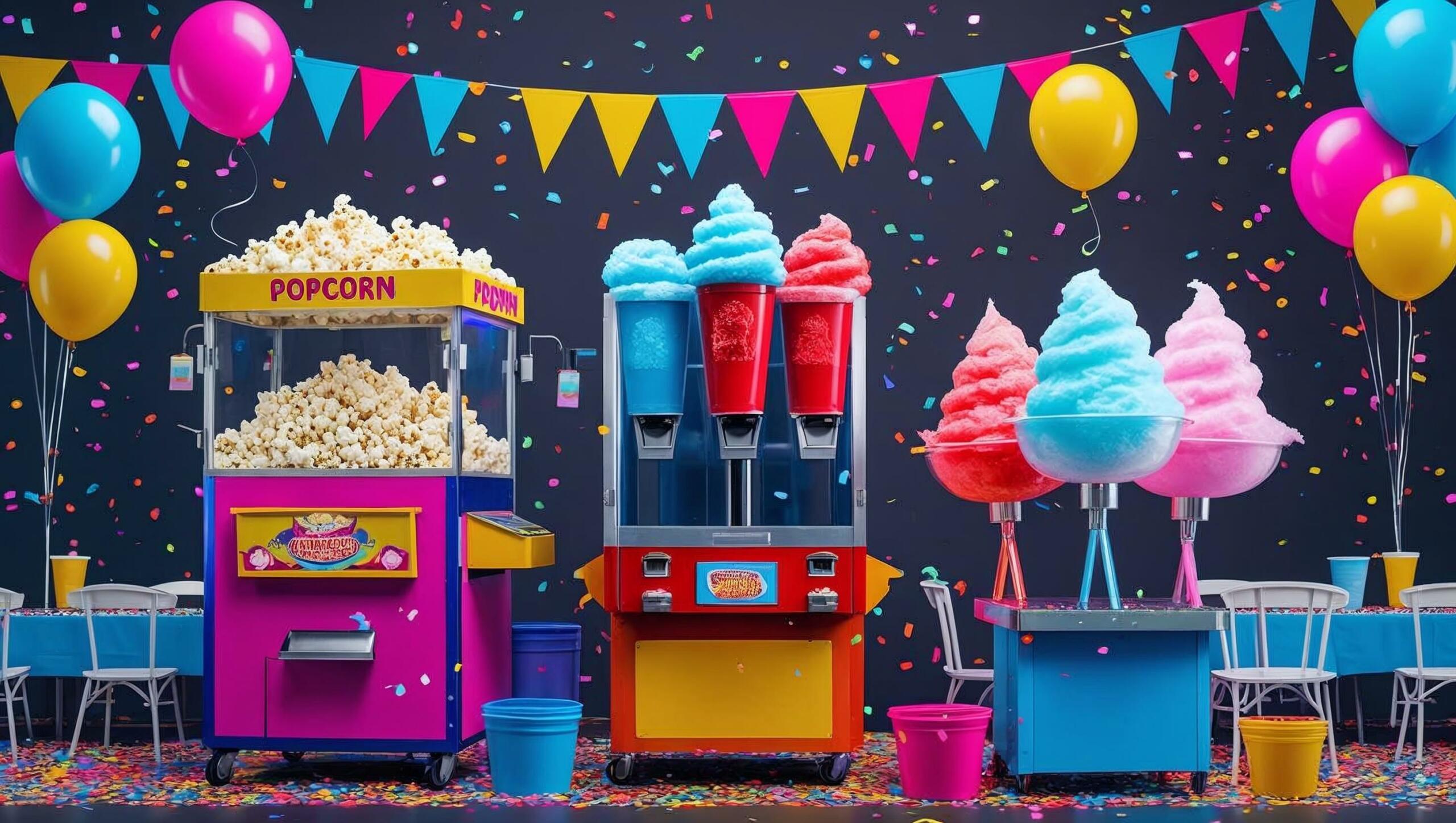Make your next party or function stand out with tasty authentic concessions from one of our popcorn, cotton candy, or snow cone machines!
